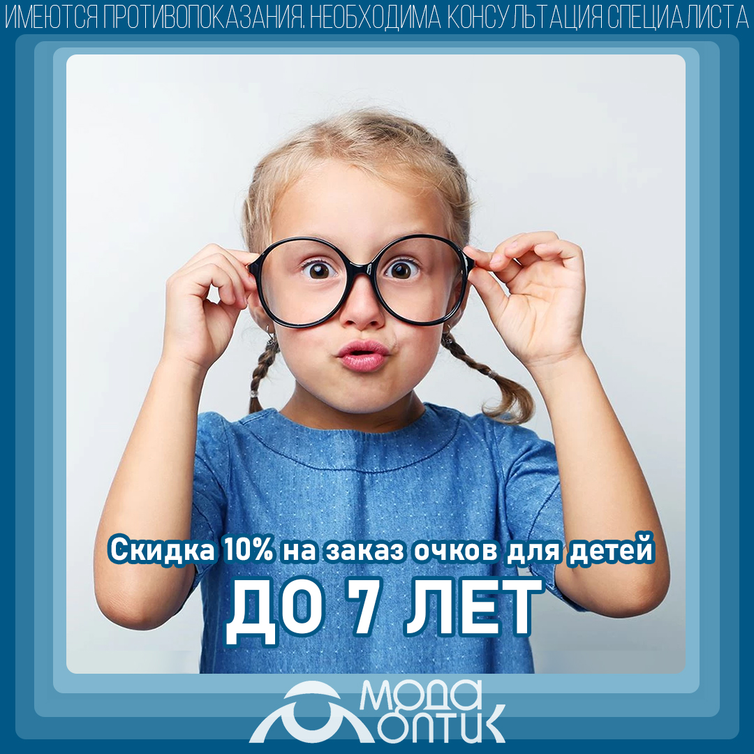 Скидка на заказ очков детям не достигшим возраста 7 лет.